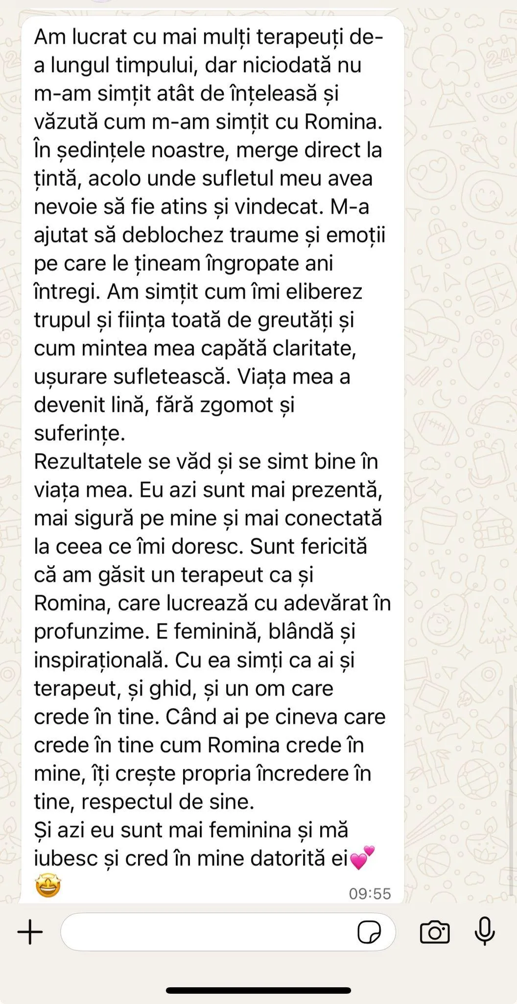 În 2021 când am primit primele mesaje de la Dumnezeu, am primit și acest mesaj: ,,Romina, am pus în tine energie vindecătoare și cu aceasta vei lucra cu oamenii și le vei deschide inimile,,.
